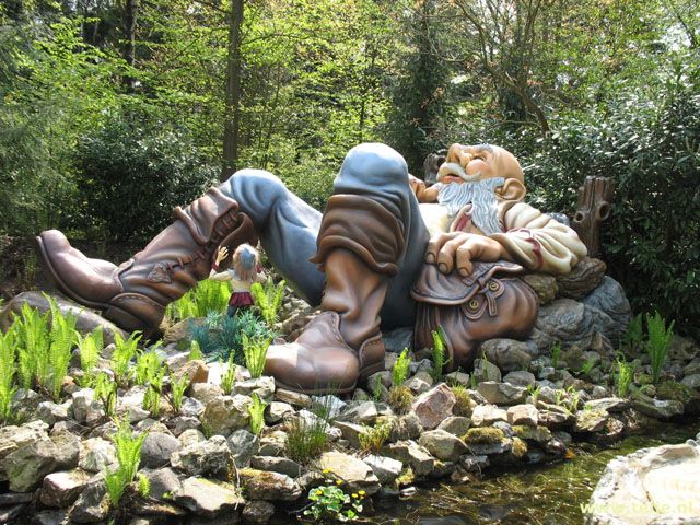 Al vanaf 1998 ligt de reus met zijn Zeven Mijls Laarzen aan te slapen in het Sprookjesbos. En iedere keer weer komt Klein Duimpje kijken of hij de laarzen te pakken kan krijgen.